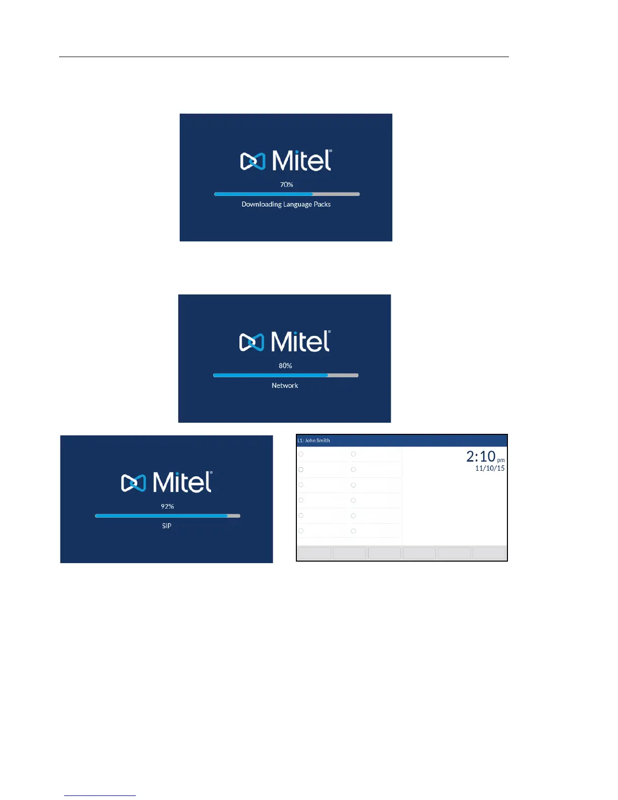 When the configuration update is complete, the phone displays the following screens and then