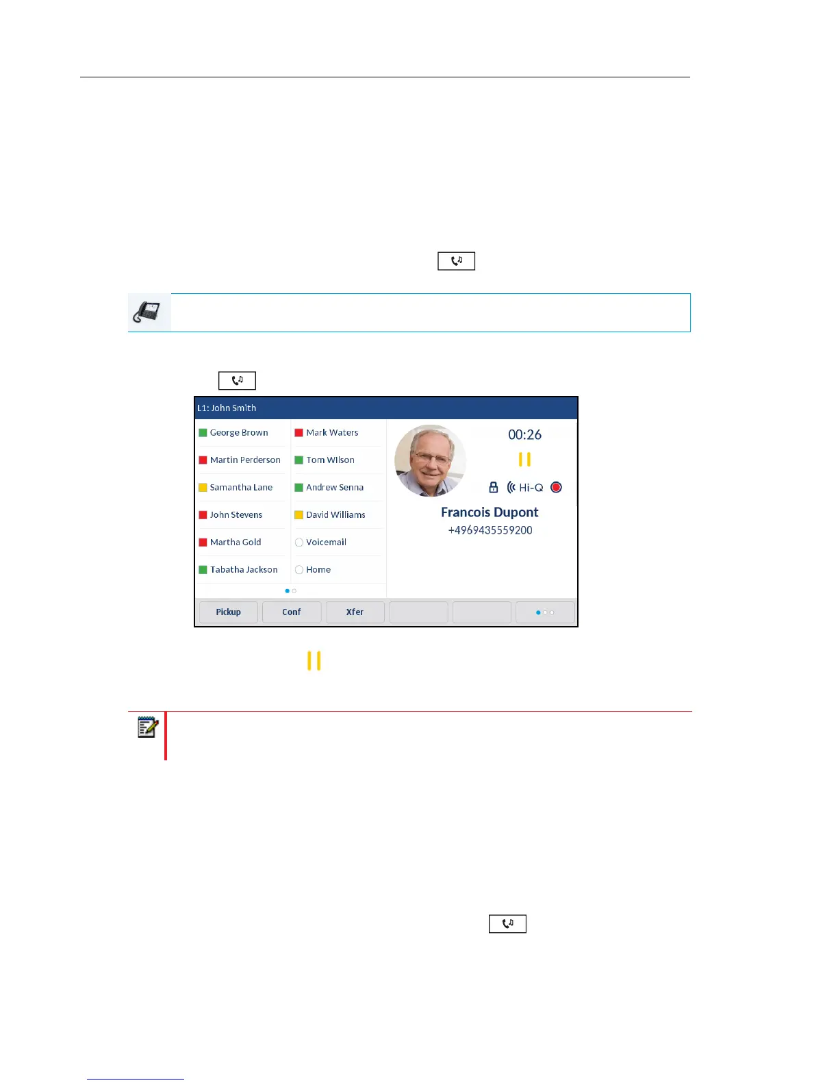 The screen displays the icon indicating the call is on hold. Additionally, the line/call