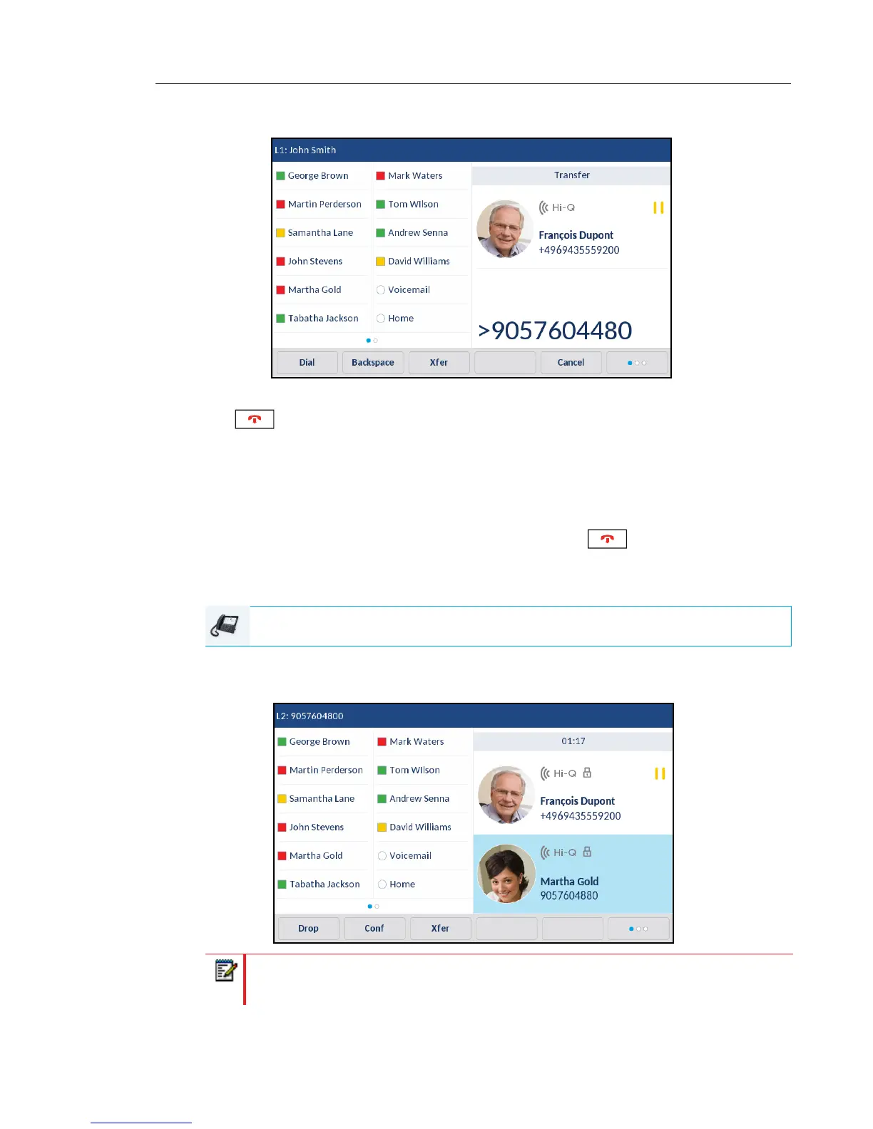 Note: Direct transferring can be performed in either the Multi-View Call screen or