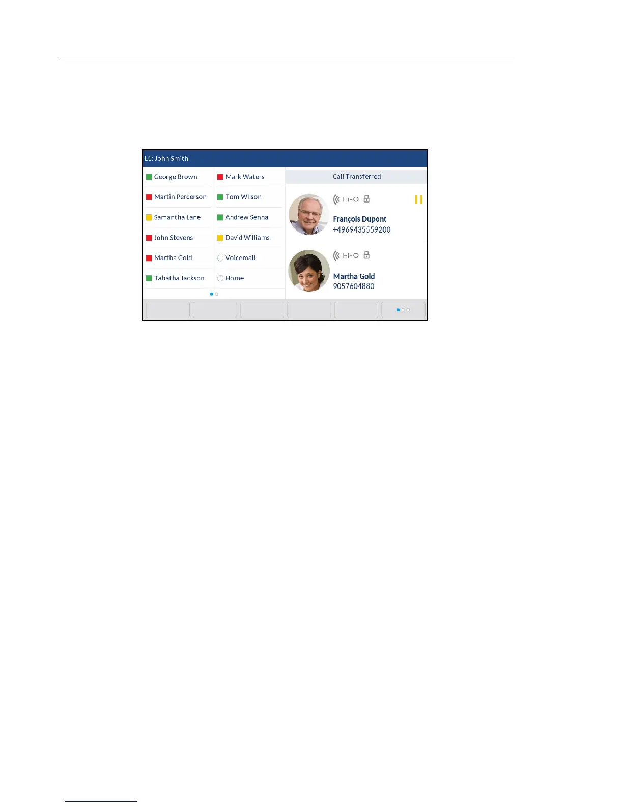 When you transfer an active call, the near-end phone displays a Call Transferred screen when