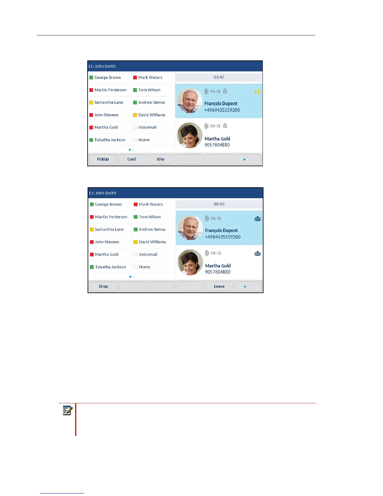 Joining two active calls in a conference also works as indicated in “Creating a Conference