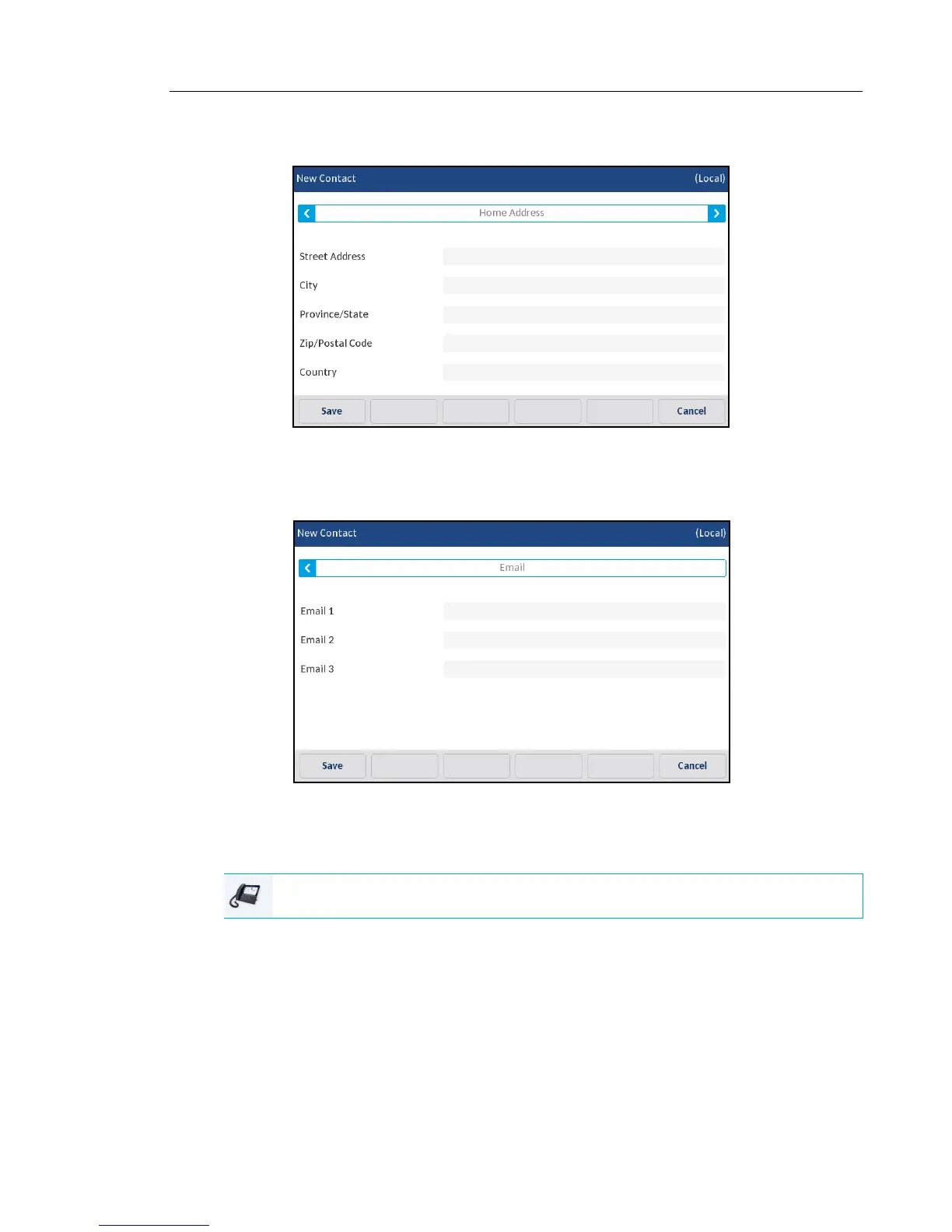 11. Press the Home Address tab, and press the right arrow button to switch to the Email tab.