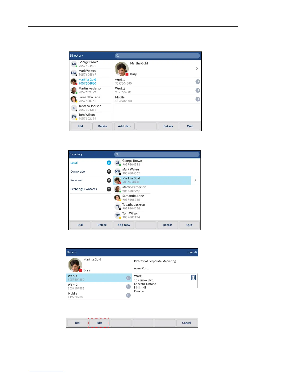 4. Press the Edit softkey (if no external Directory sources are configured/enabled) or navigate