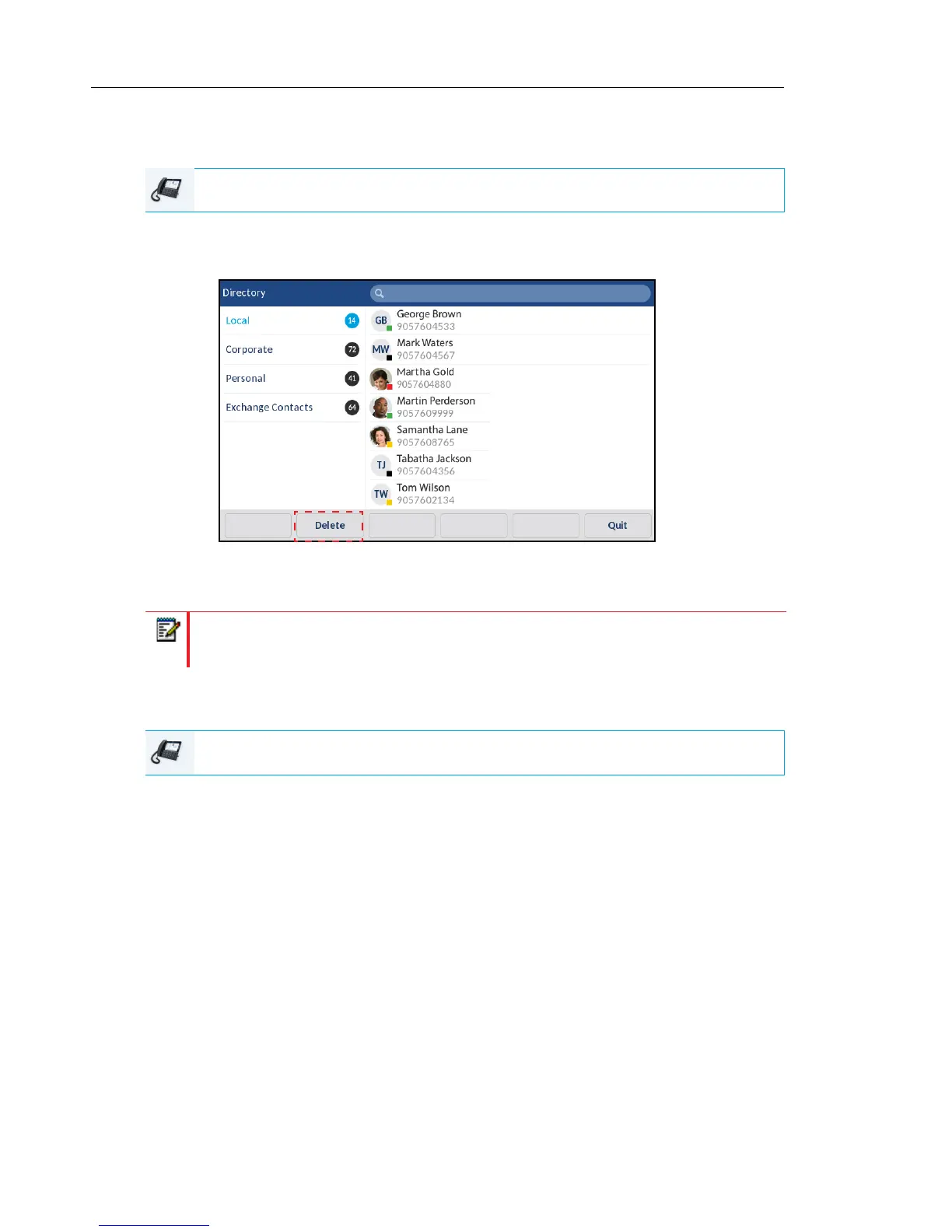 3. Press the Delete softkey again to delete all contacts from your Local Directory.
