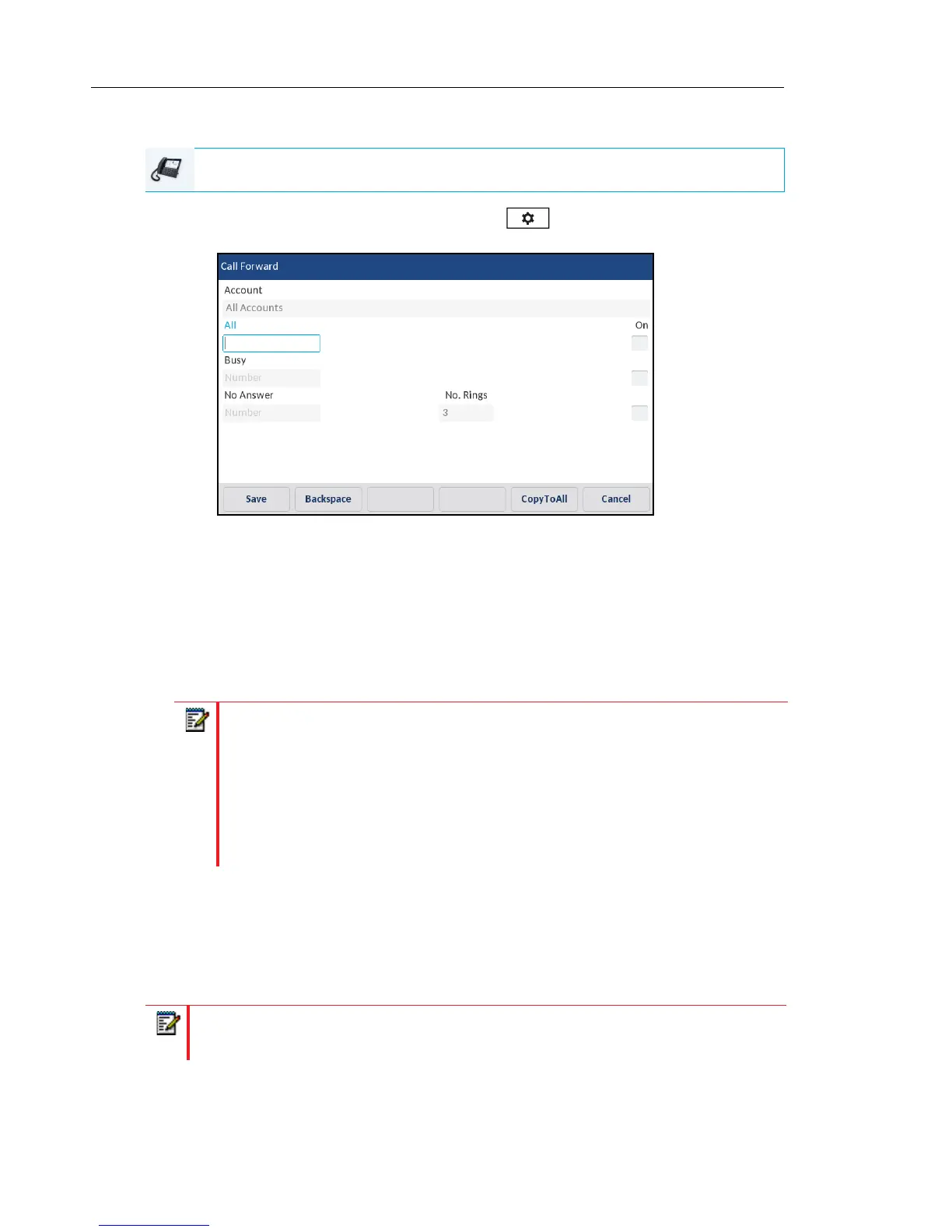 2. Pressing the CopyToAll key copies the call forward number of the Call Forward