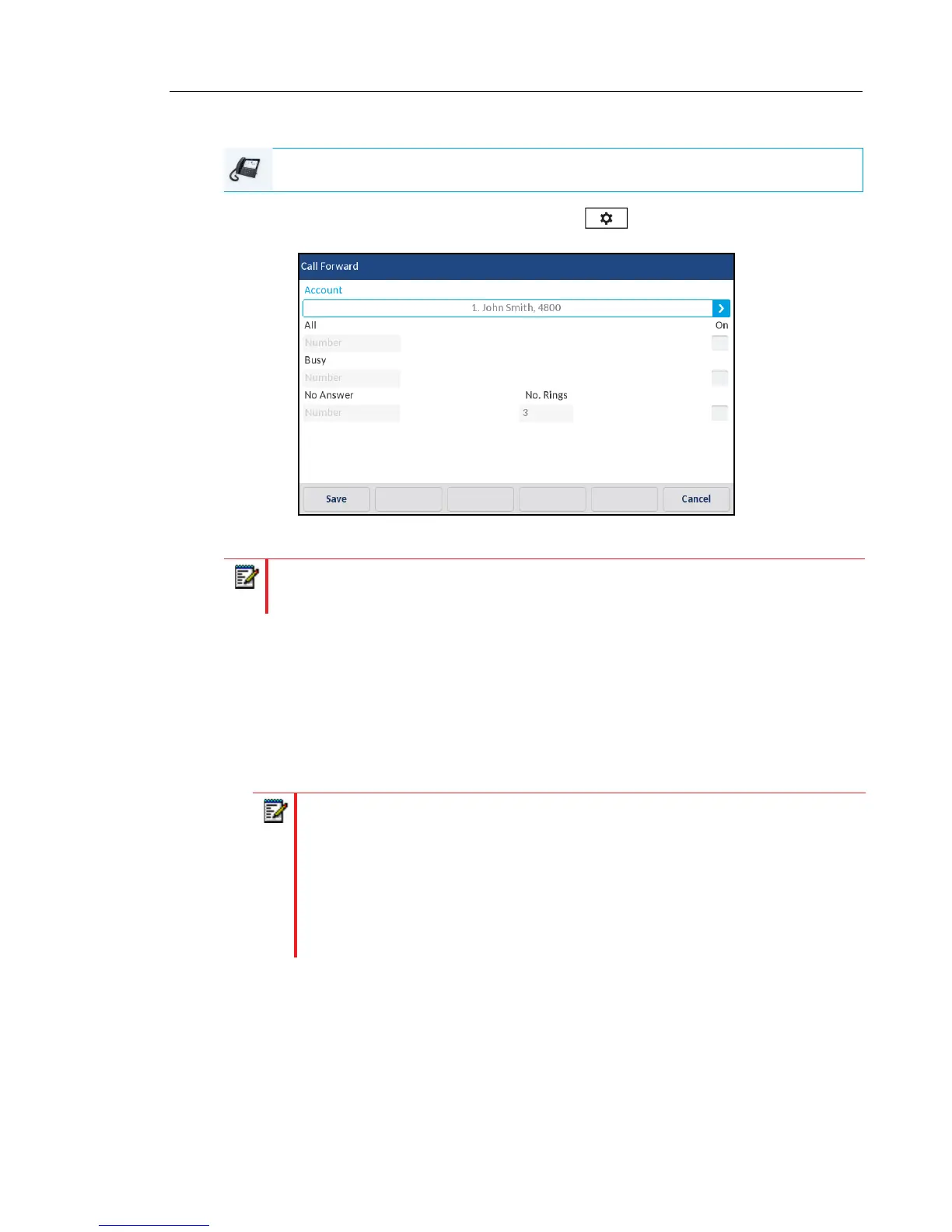 1. Press the configured Call Fwd softkey or press and then the Call Forward icon.