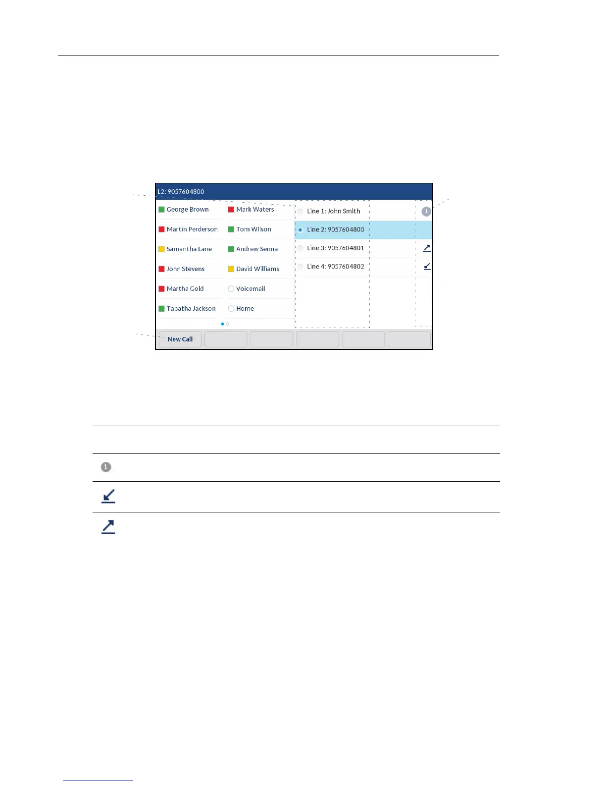 It also allows you to easily select a line to act upon. When a line is not in use, a New Call key