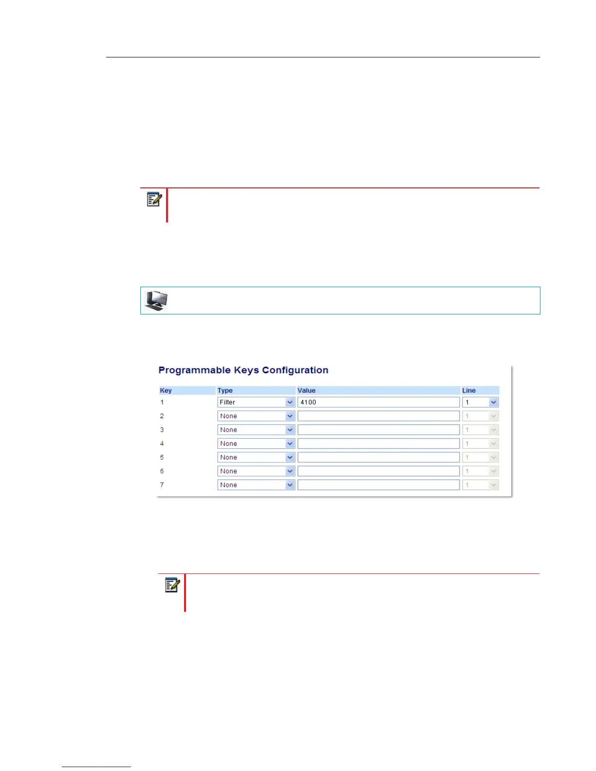 Alternatively, a single Filter softkey can be configured without a defined key value. If this is the