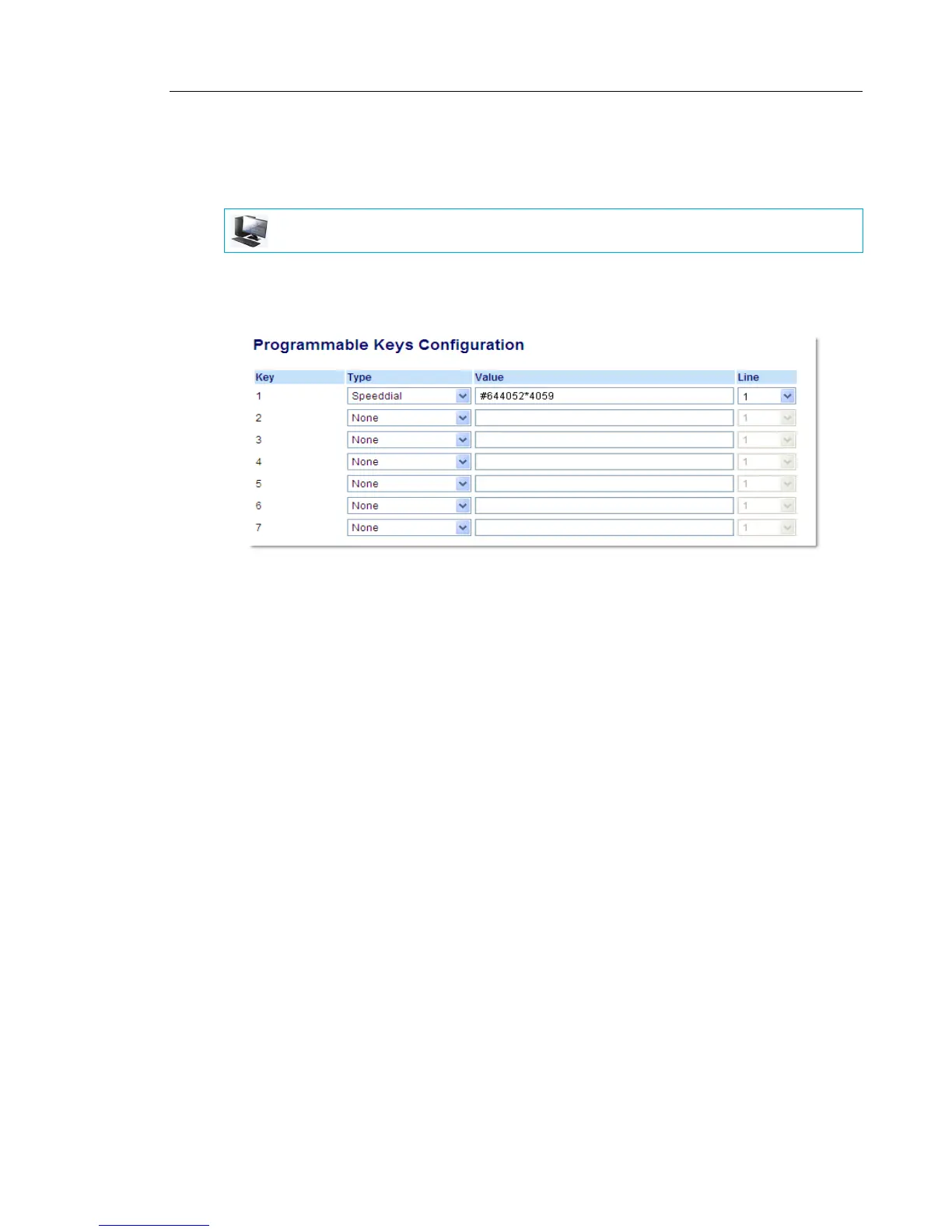 6. In the “Line” field, select the line for which you want to use the key functionality.