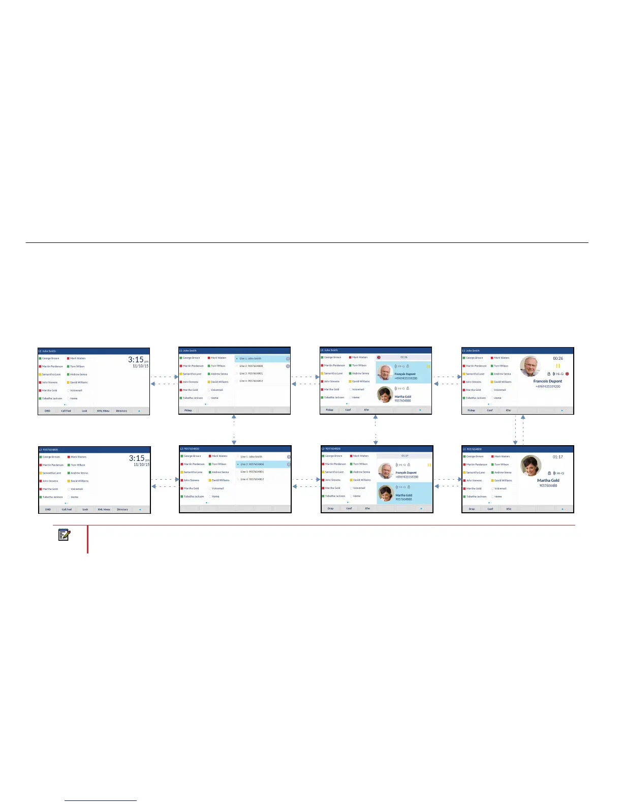 area to the right of the top softkeys to switch to the line and call screens and swipe up and down to scroll through the different lines or calls on the respective
