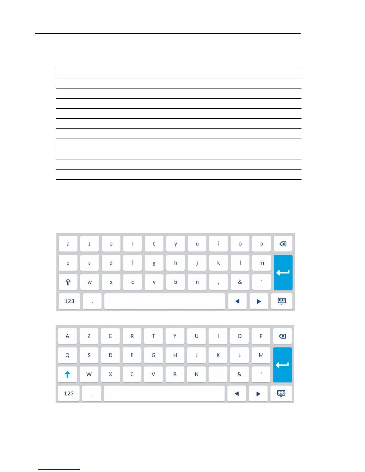 When the phone’s input language is defined as French, the following keyboard layouts are used: