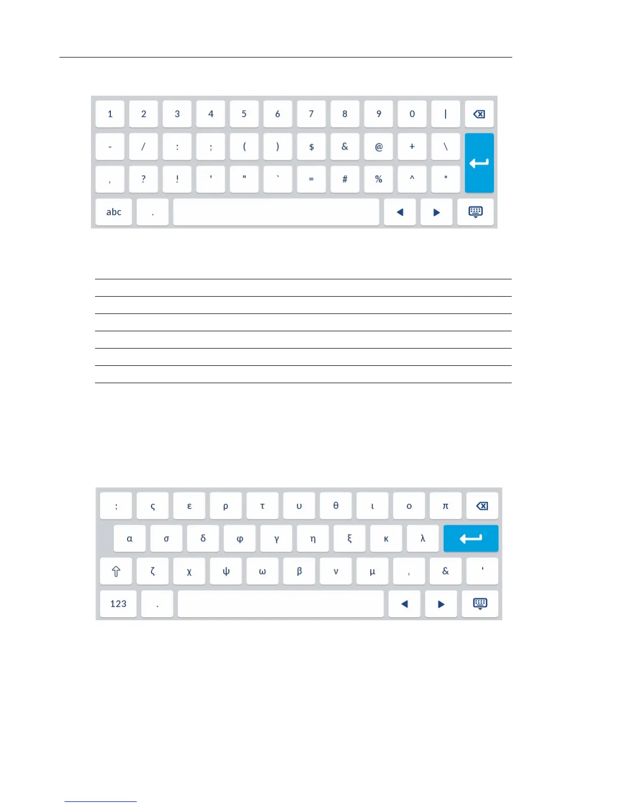 When the phone’s input language is configured as Greek, the following keyboard layouts are