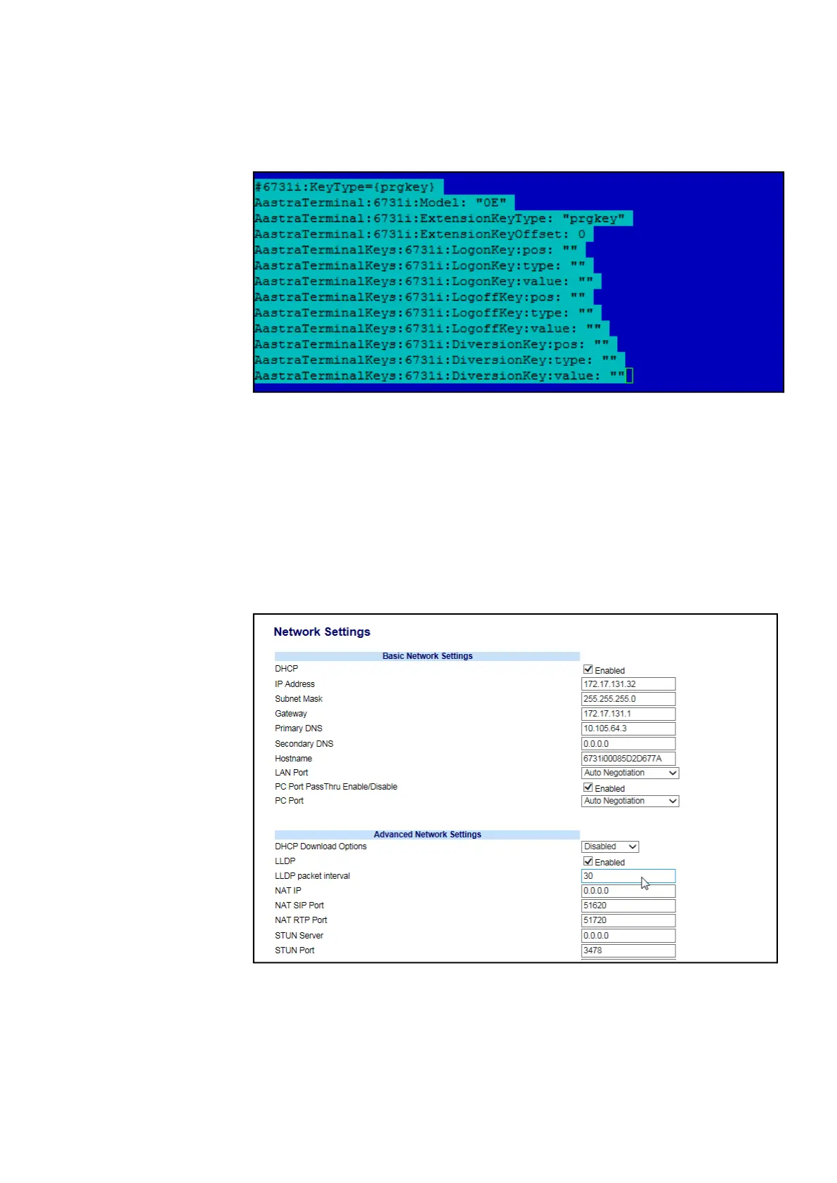 the example above, the logon/logoff key is disabled for all 6731 telephones, and