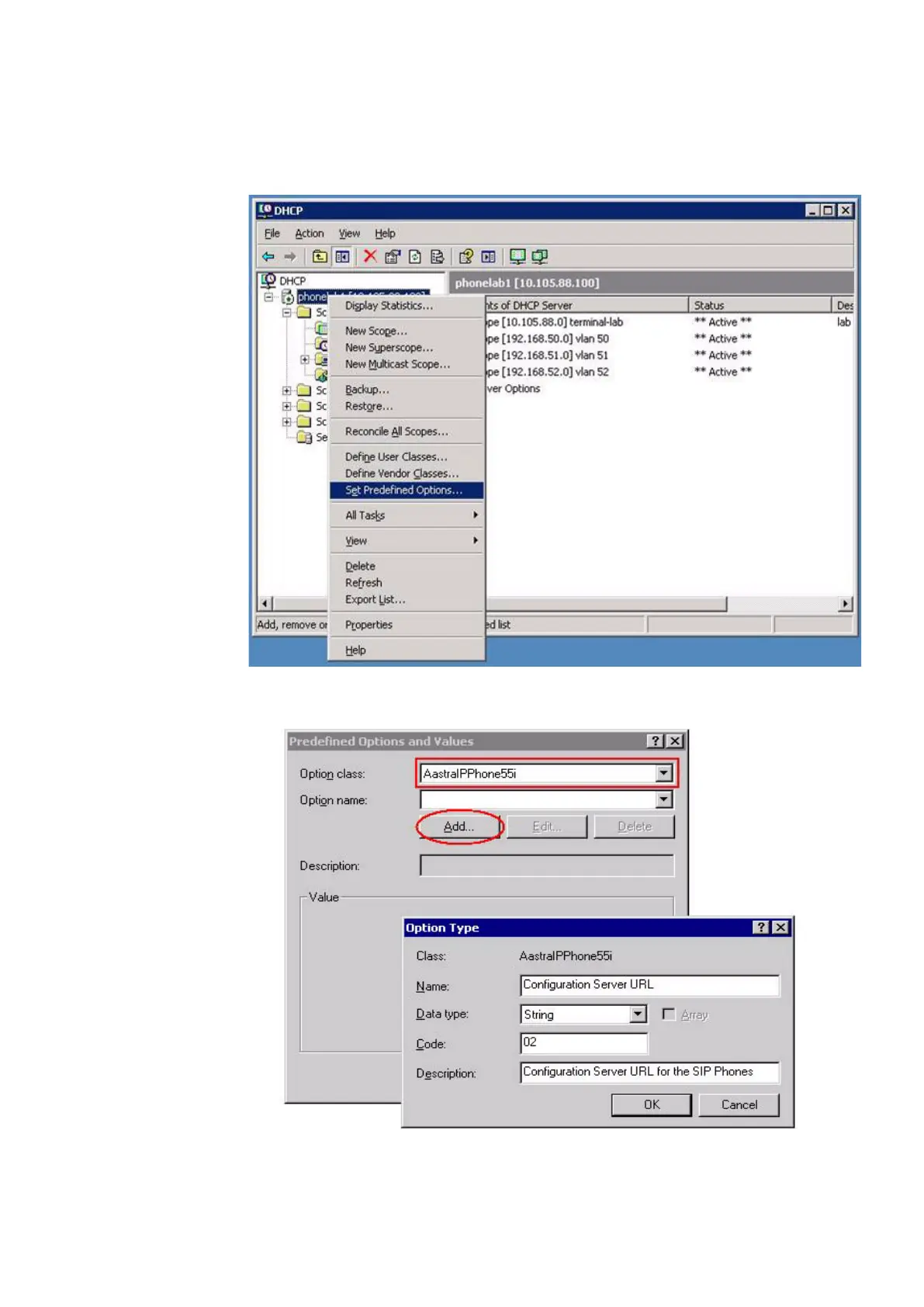 Select Set Predefined Options to get the menu to enter the option 43 data.