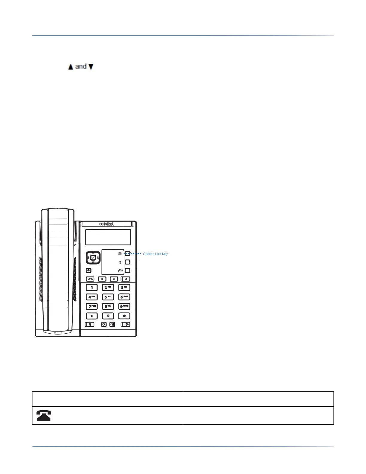 ronments, the Callers List key may bring up a Callers List provided by the call manager; therefore,