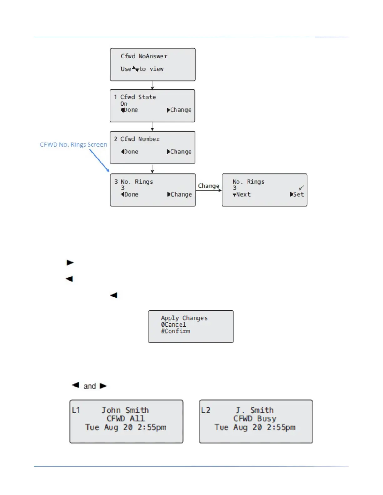 14. Press the 2 Next key to select the number of rings to apply to the phone for call forwarding incoming