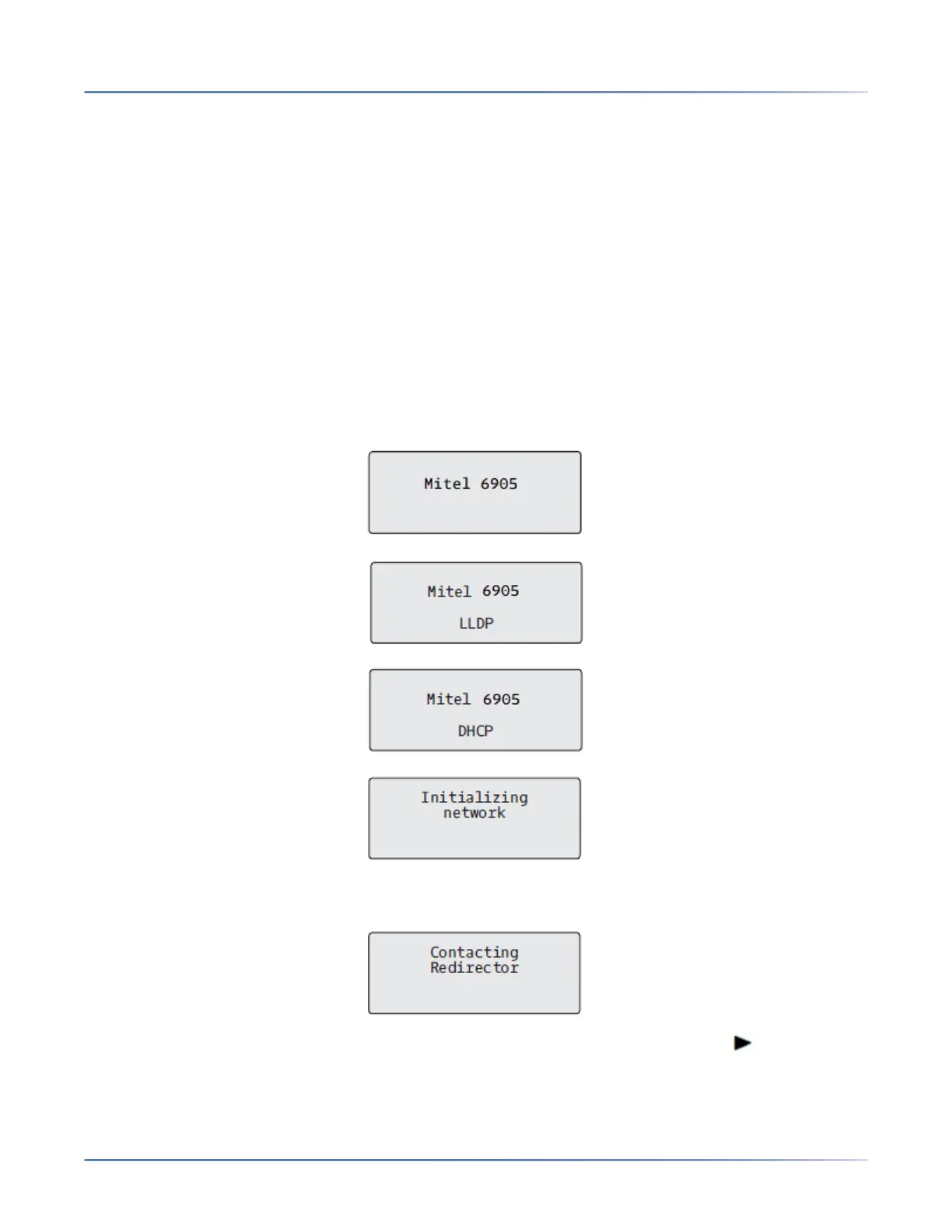 During the first start up, the 6905 phone attempts to contact the Redirection and Configuration Server