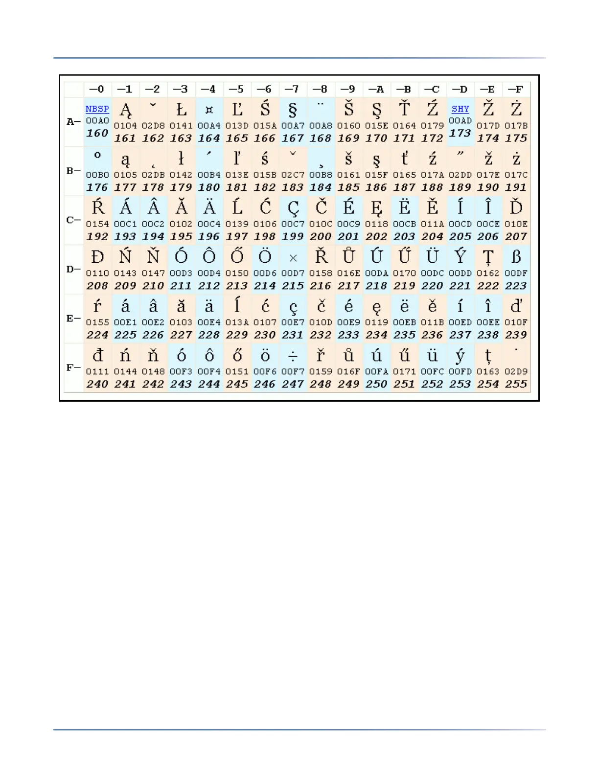 The following full character sets are supported: