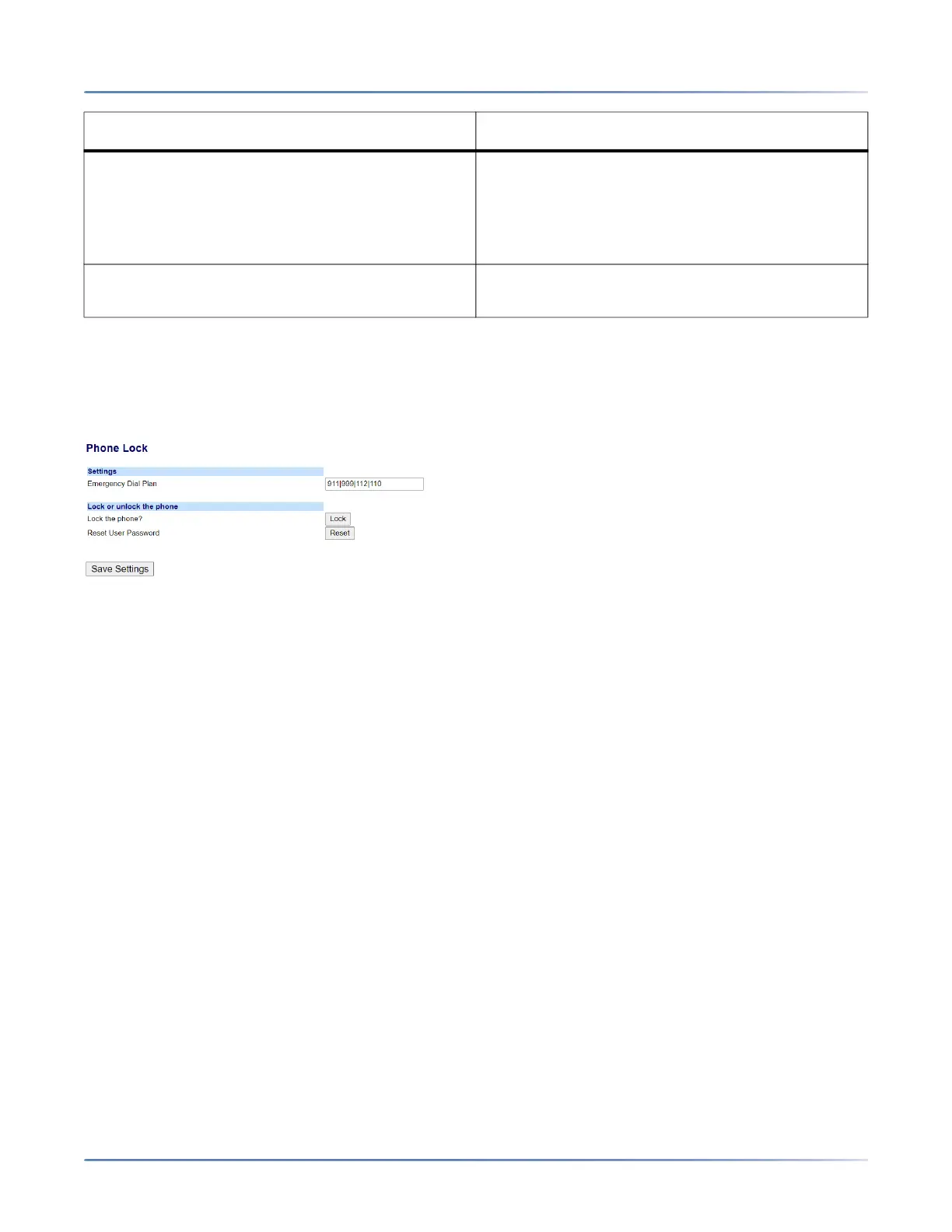 3. Click Save Settings to save the emergency dial plan to your phone.