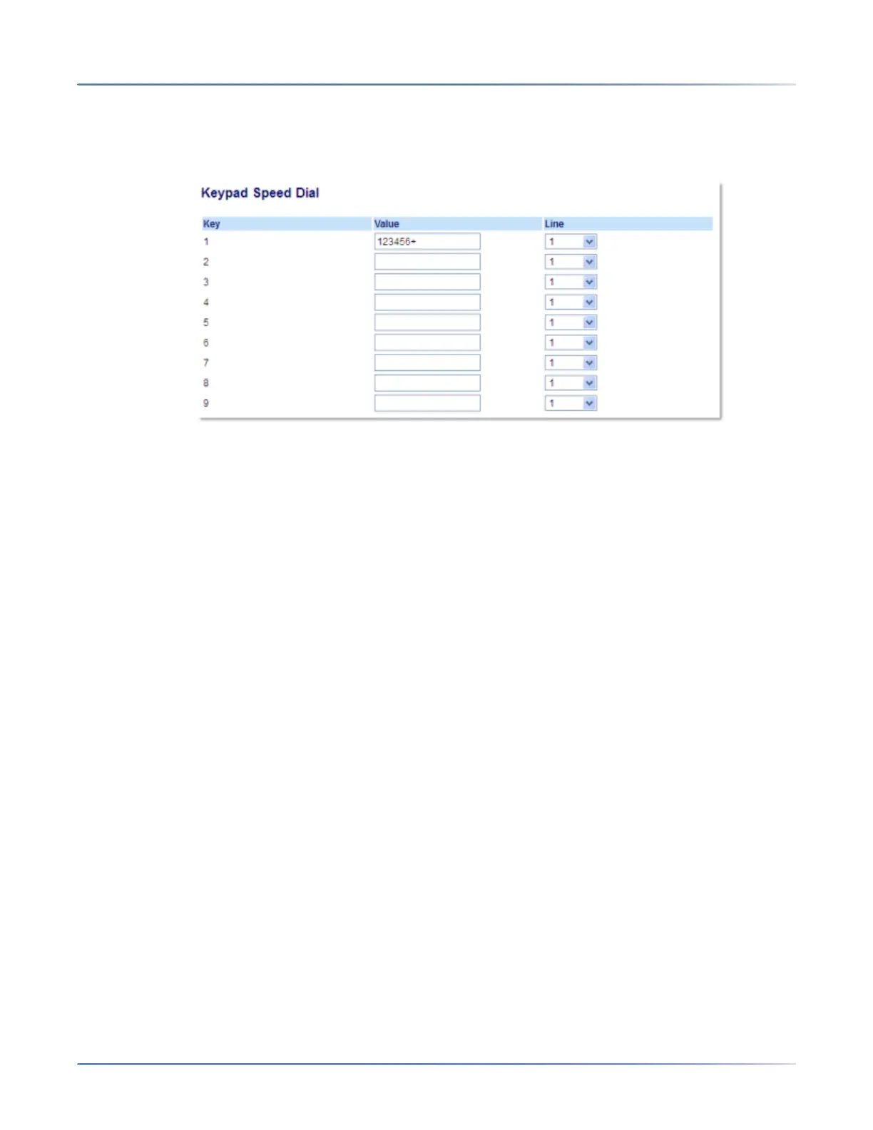 4. In the Line field, select a line for which to apply the speed dial to. Valid values are 1 and 2.