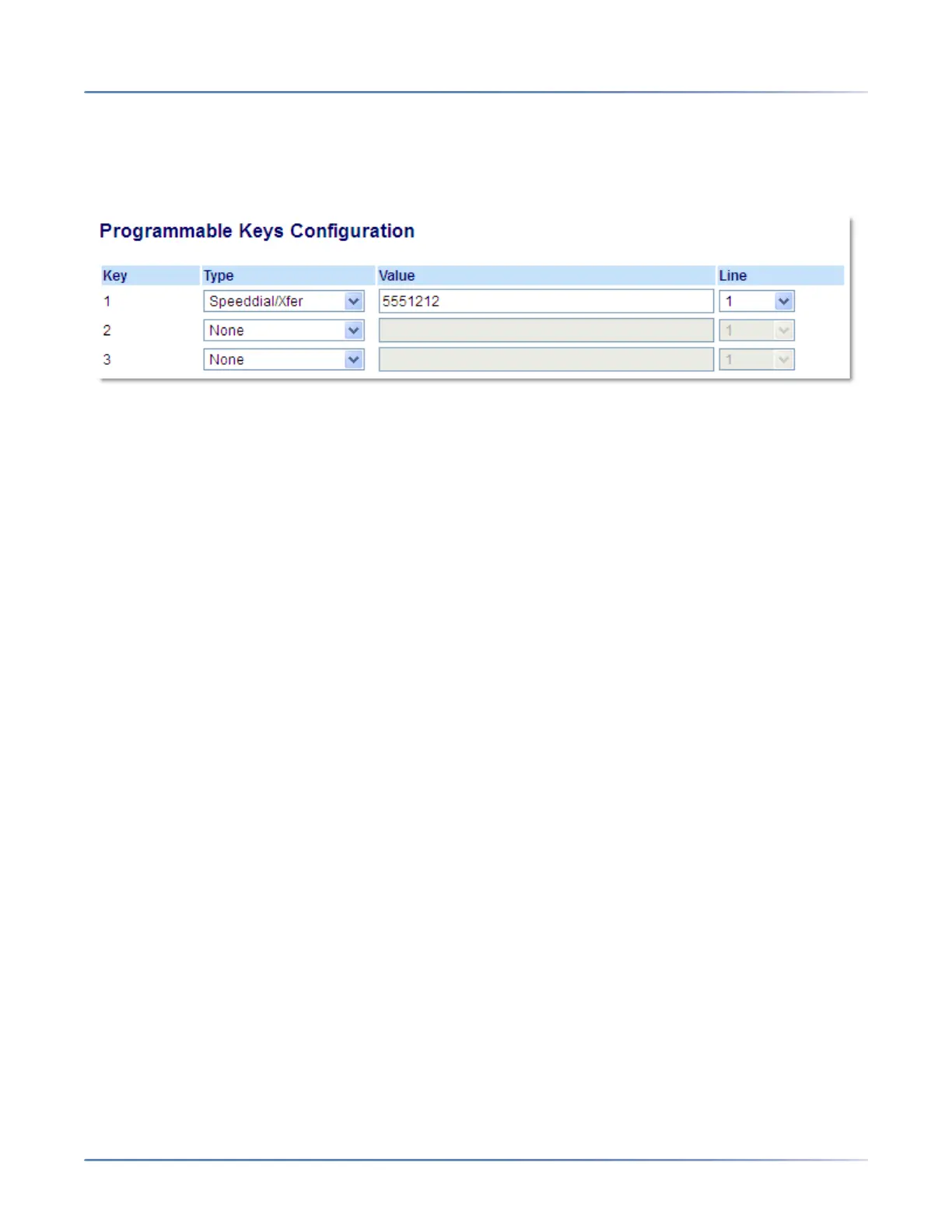 5. In the Line field, select the line for which you want to use the key functionality.