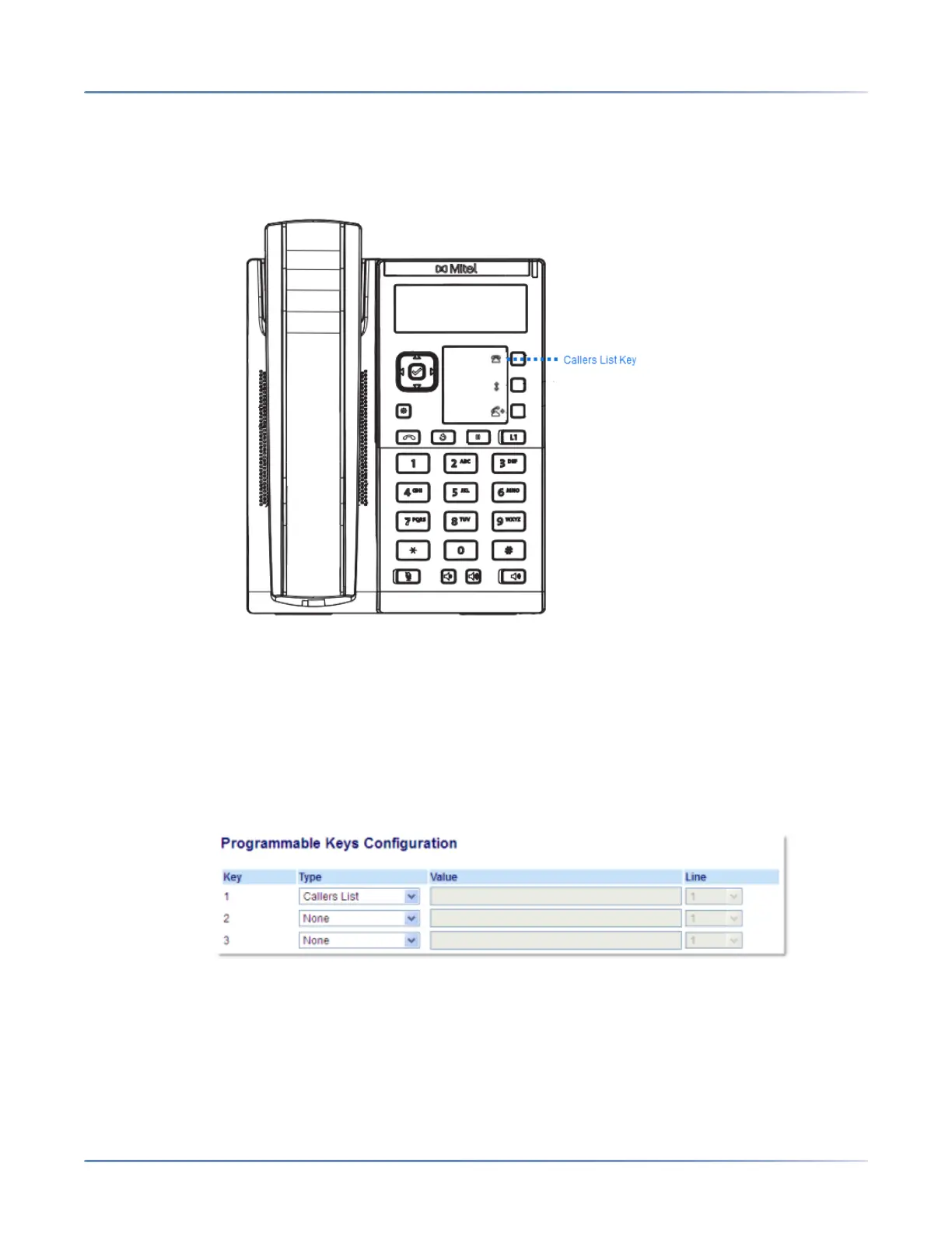 By default, the Callers List key is programmed on Key 1. However, using the Mitel Web UI, you can reas-