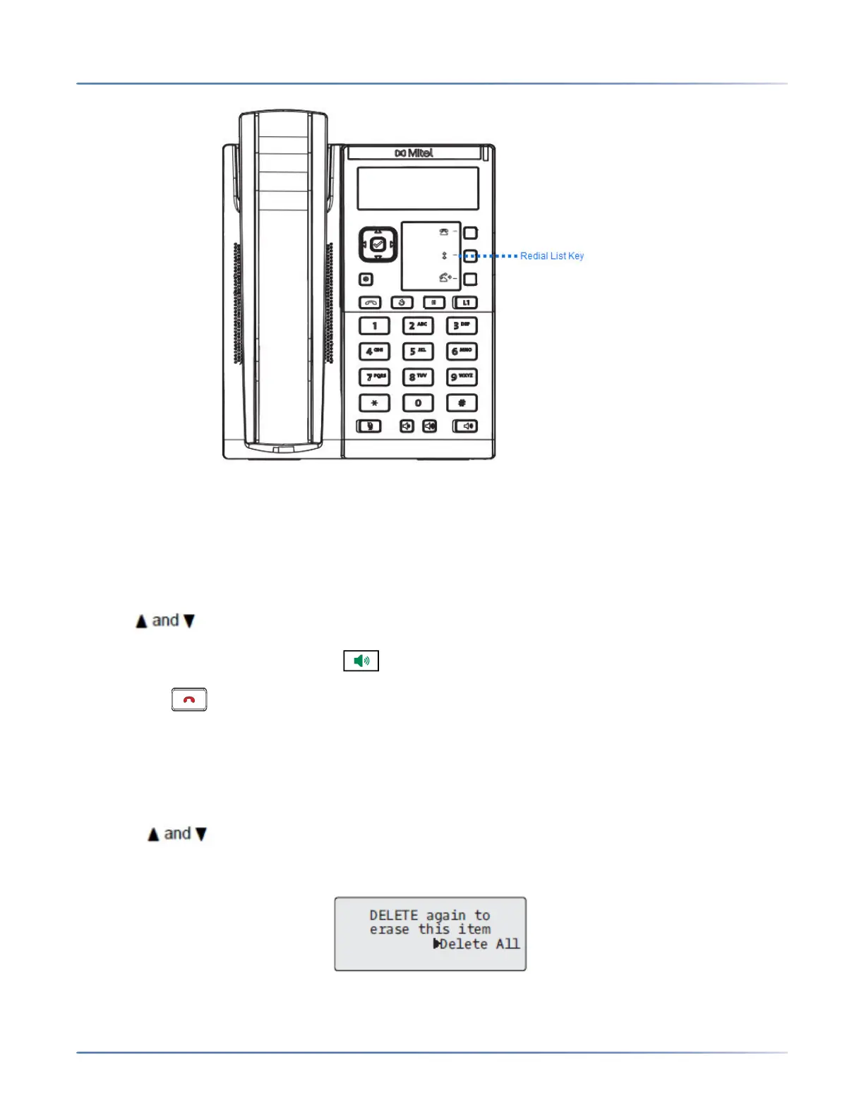 1. Press the Redial hard key or configured Redial key to access the Redial List. The information for your