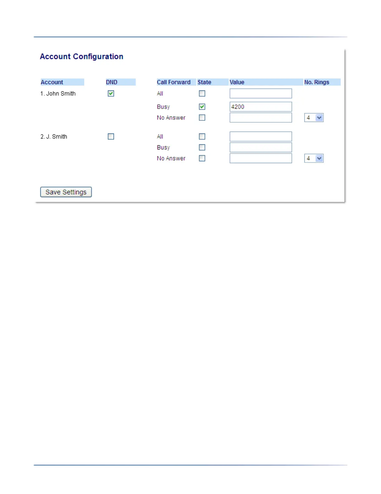 5. For each account, enable DND by placing a check mark in the box. Disable DND by unchecking the
