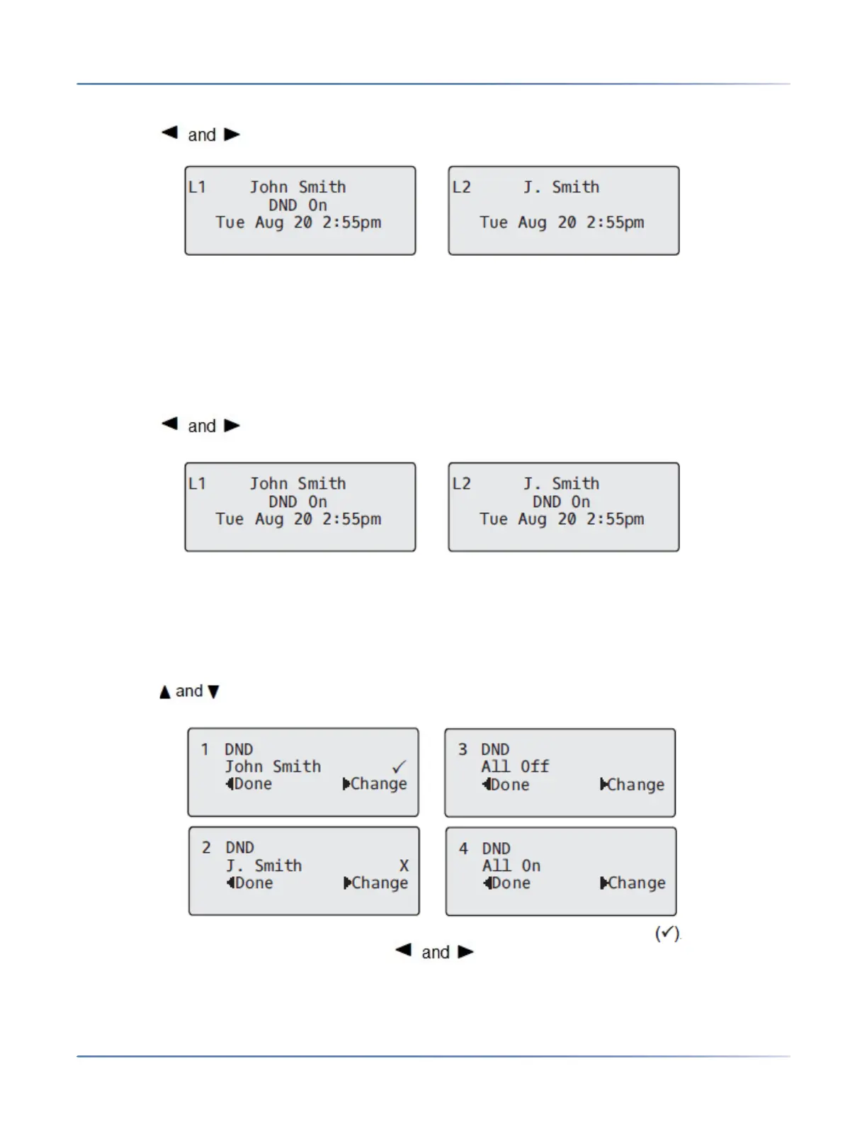 In the above example, account 1 has DND enabled as indicated by a check mark . Account 2 has