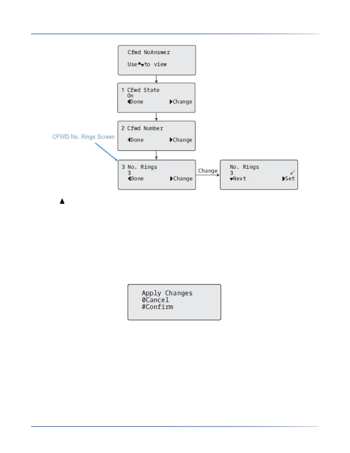11. Press Next to select the number of rings to apply to the phone for call forwarding incoming calls.