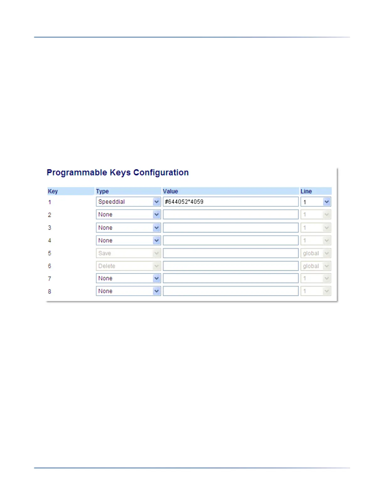 5. In the “ Line” field, select the line for which you want to use the key functionality.