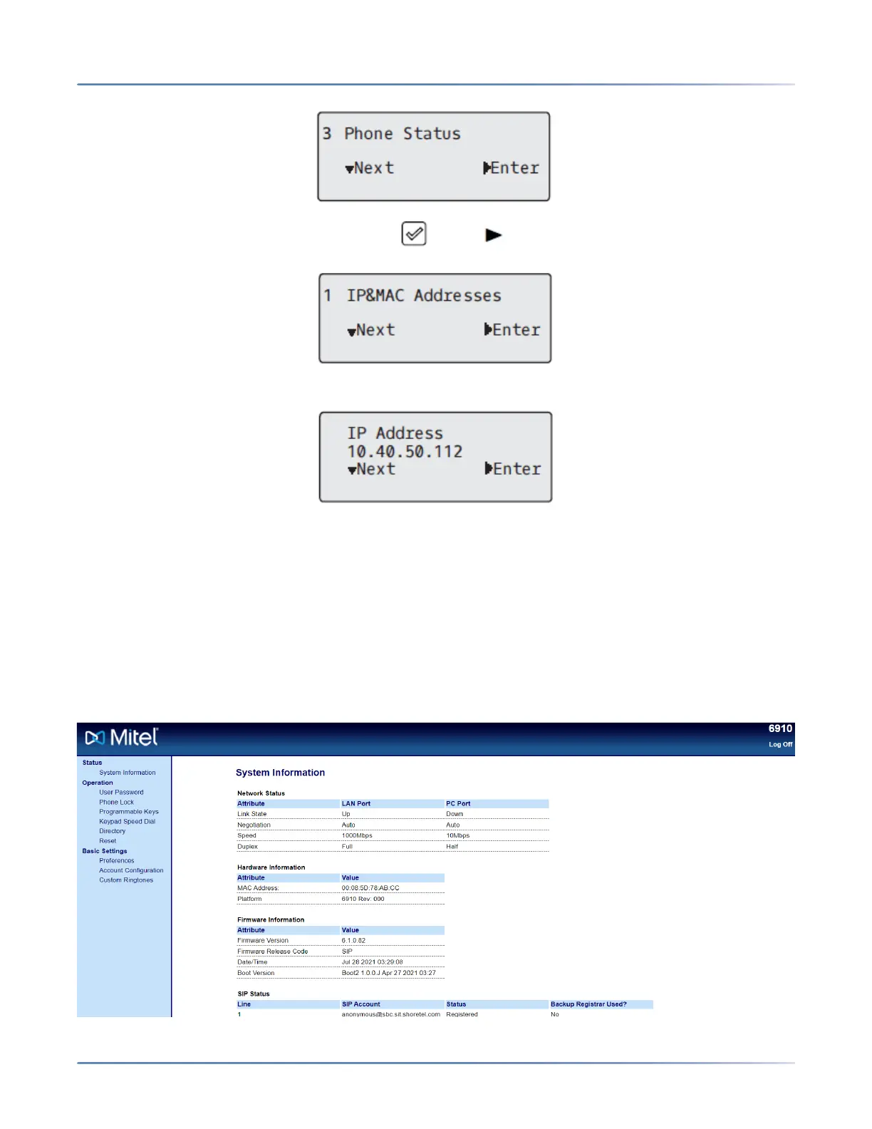 PHONE STATUS VIA THE MITEL WEB UI