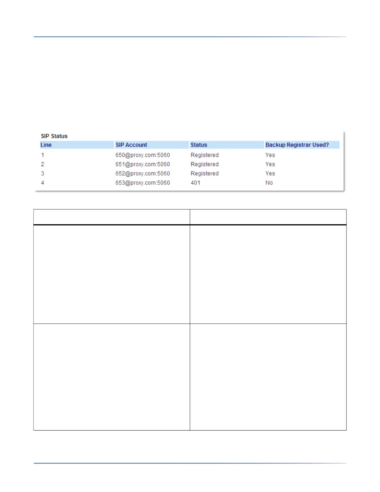 The IP phones show the SIP registration status on the IP phone’s Status screen in the Mitel Web UI.