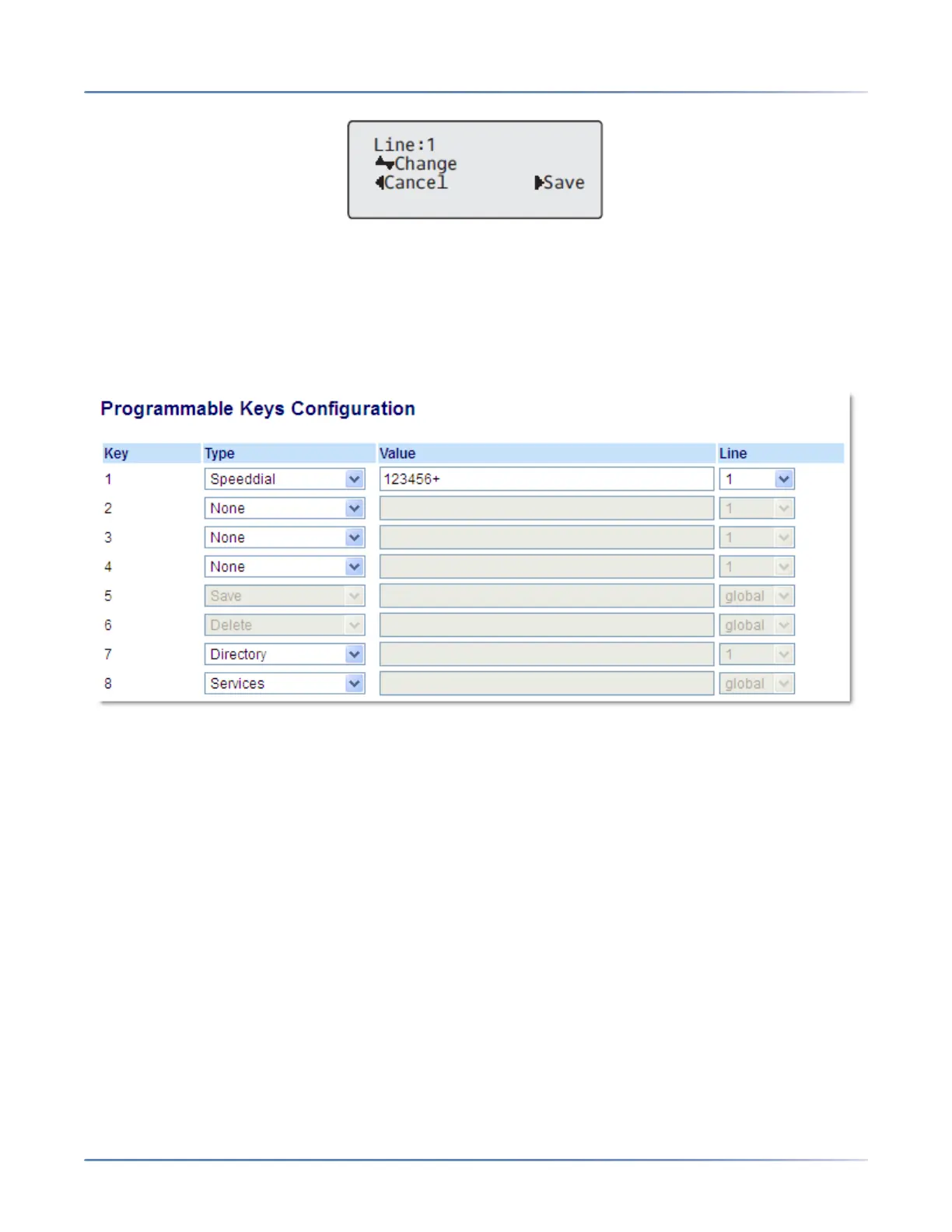 5. In the Line field, select a line for which to apply the speed dial to. Valid values are 1 through 24.