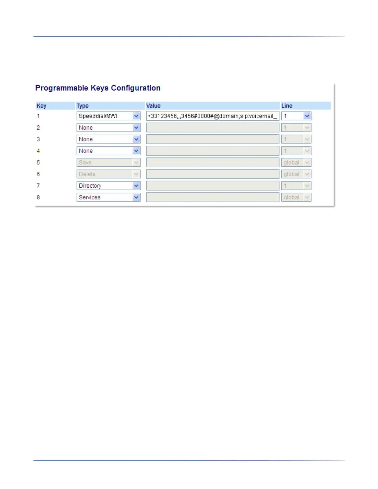 5. In the Line field, select the line for which you want to use the key functionality. Valid values are: