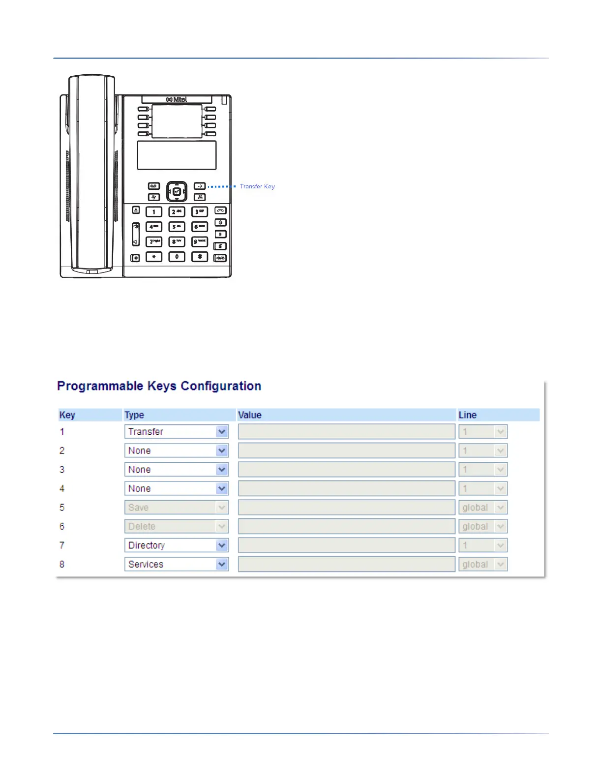 LINE KEYS AND PROGRAMMABLE KEYS TRANSFER KEY