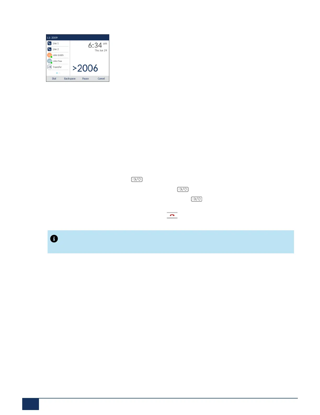 and after reviewing the number, press the Dial softkey. Use the Backspace softkey to correct any errors