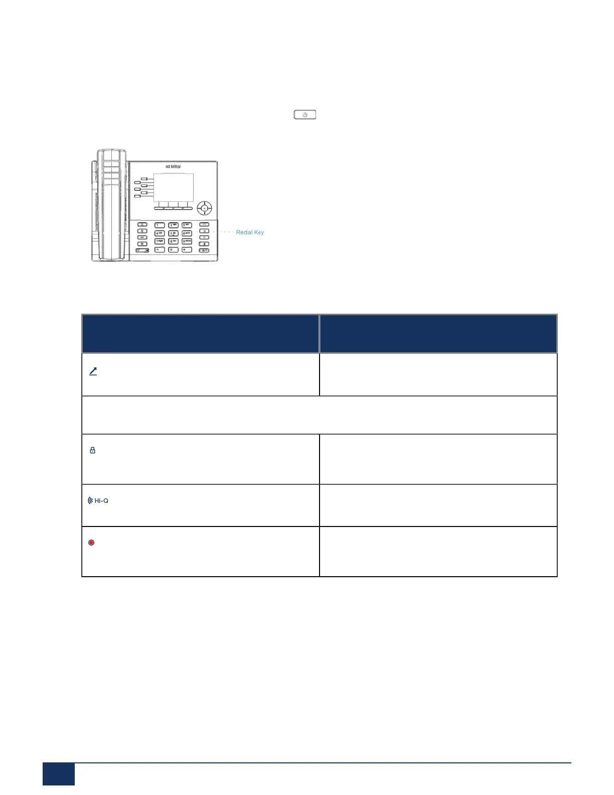 The following table identifies and describes the various icons displayed in the Outgoing Redial List.