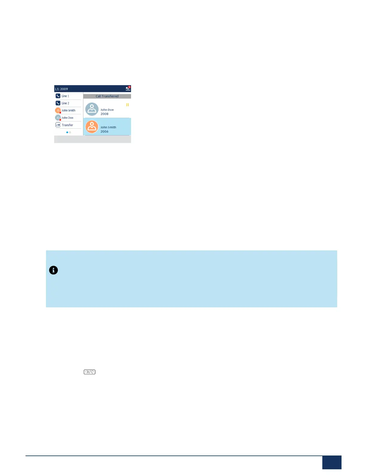 transferred and the far-end call is dropped. The figure below illustrates the Call Transferred screen on the