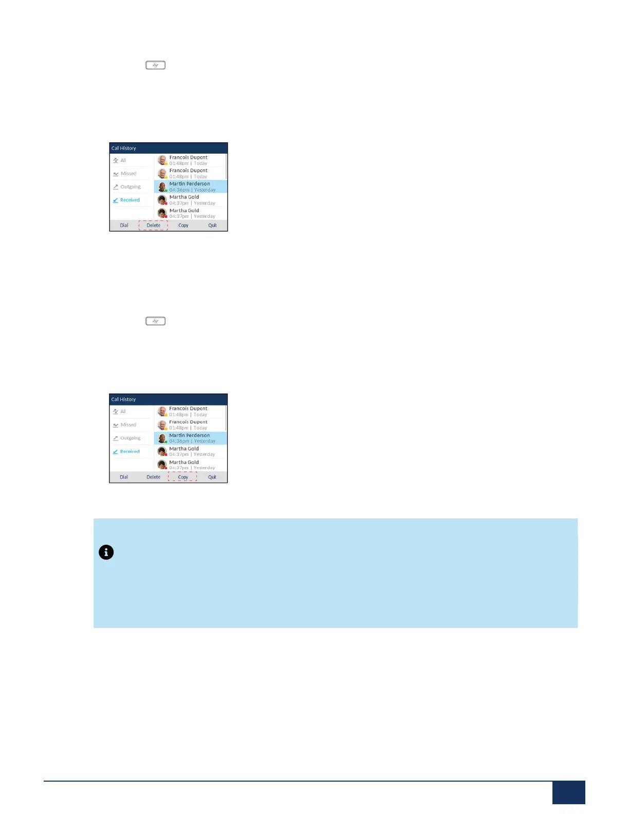 3. Press the up and down navigation keys to scroll through and highlight the respective Received Callers