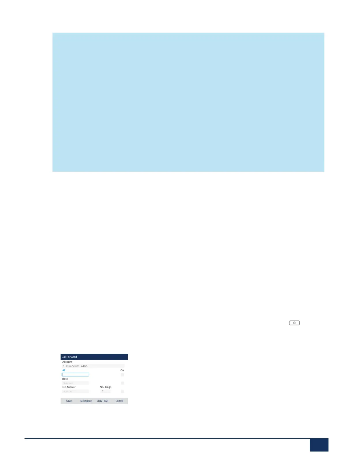 1, the changes also apply to all accounts on the phone. When enabling a Call Forward state,