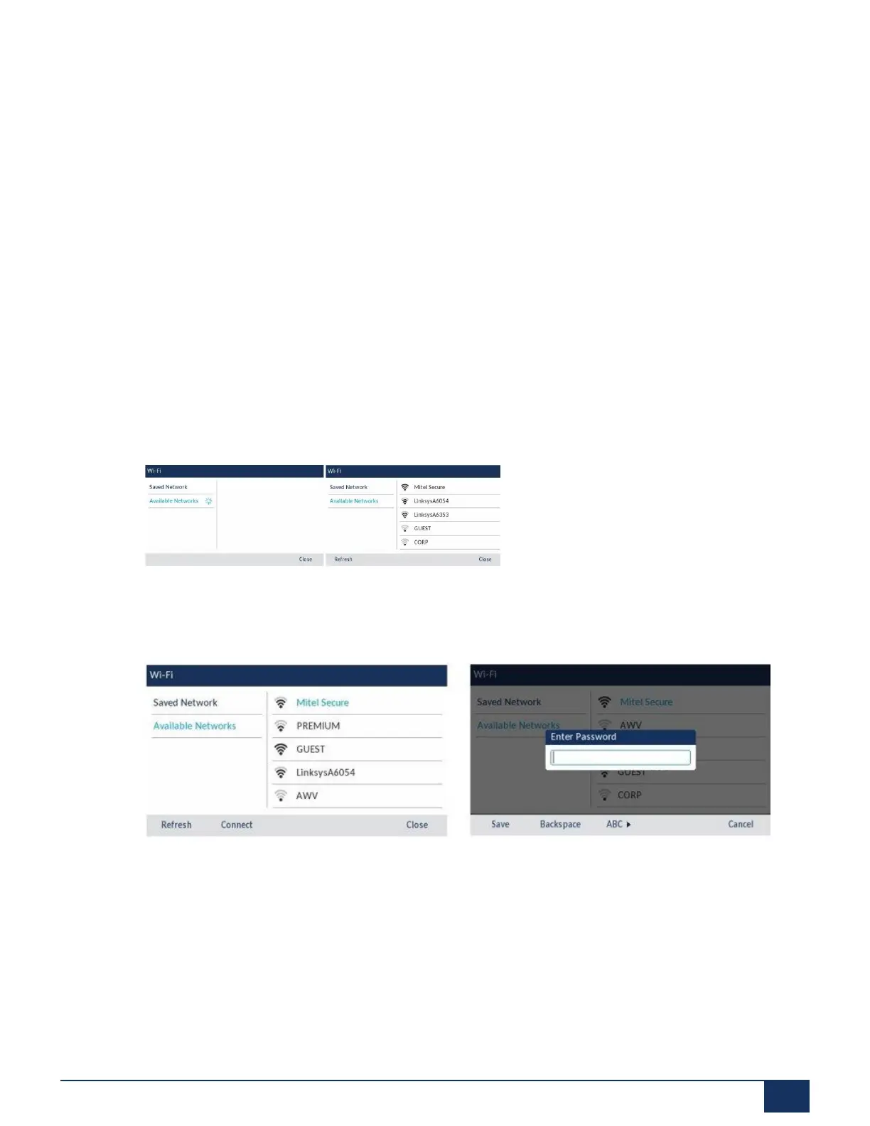6. Select an SSID (that is, the name of a Wi-Fi network; for example, Mitel Secure) from Available