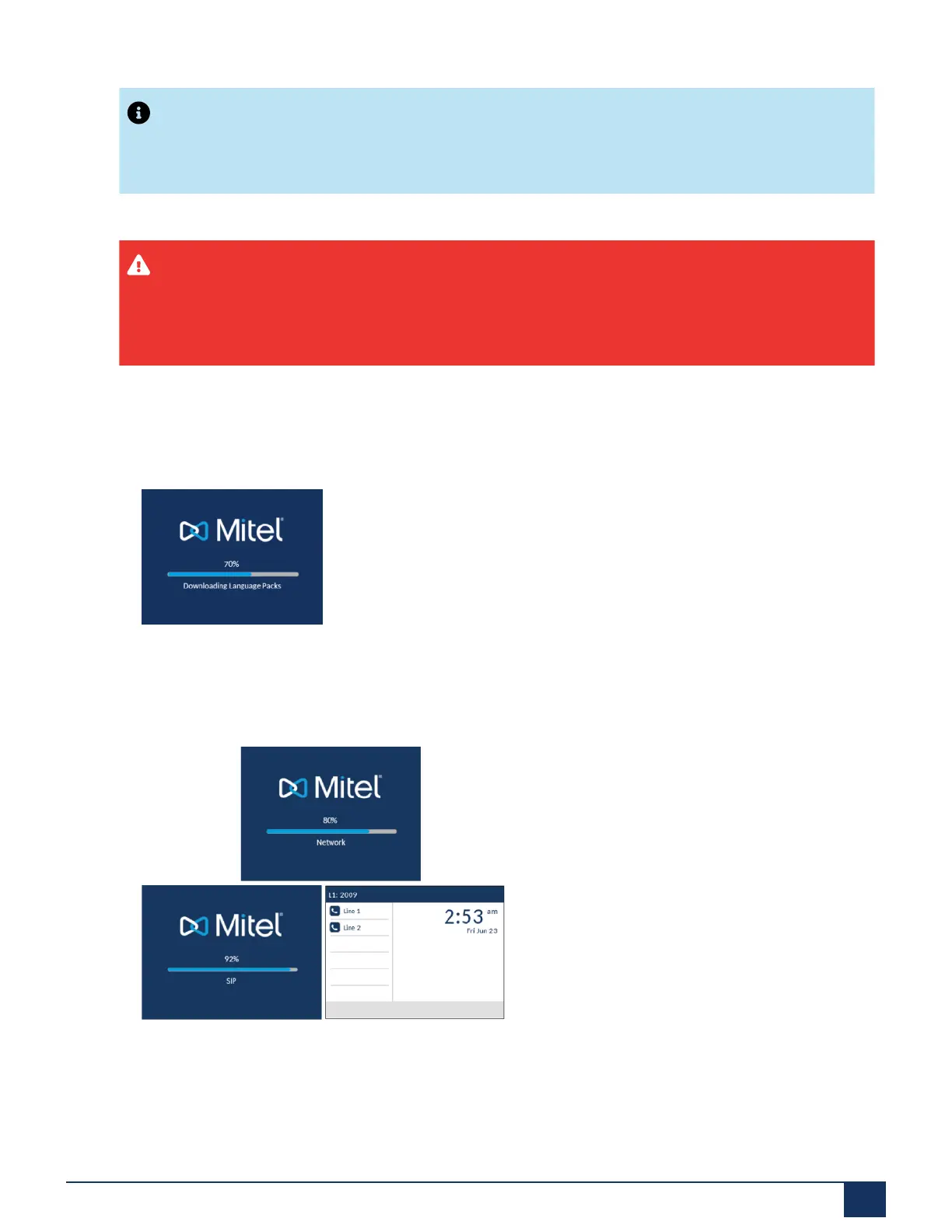 When the configuration update is complete, the phone displays the following screens and then displays the