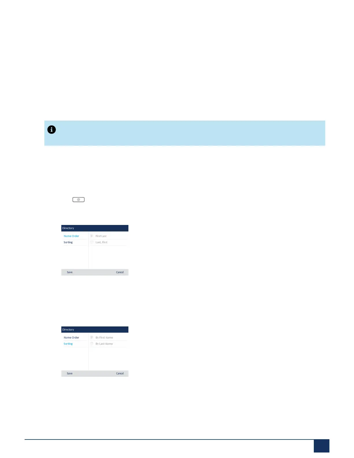 2. Navigate to the Directory > Settingsoption and press the select button or Select softkey.
