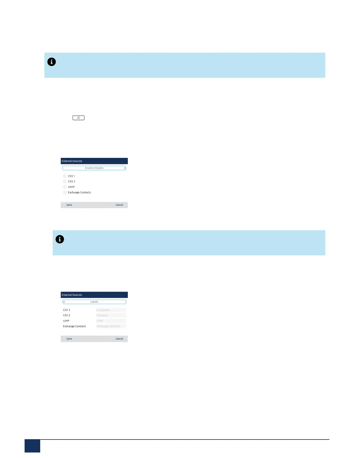 2. Navigate to the Directory > External Sources option and press the select button or Select softkey.