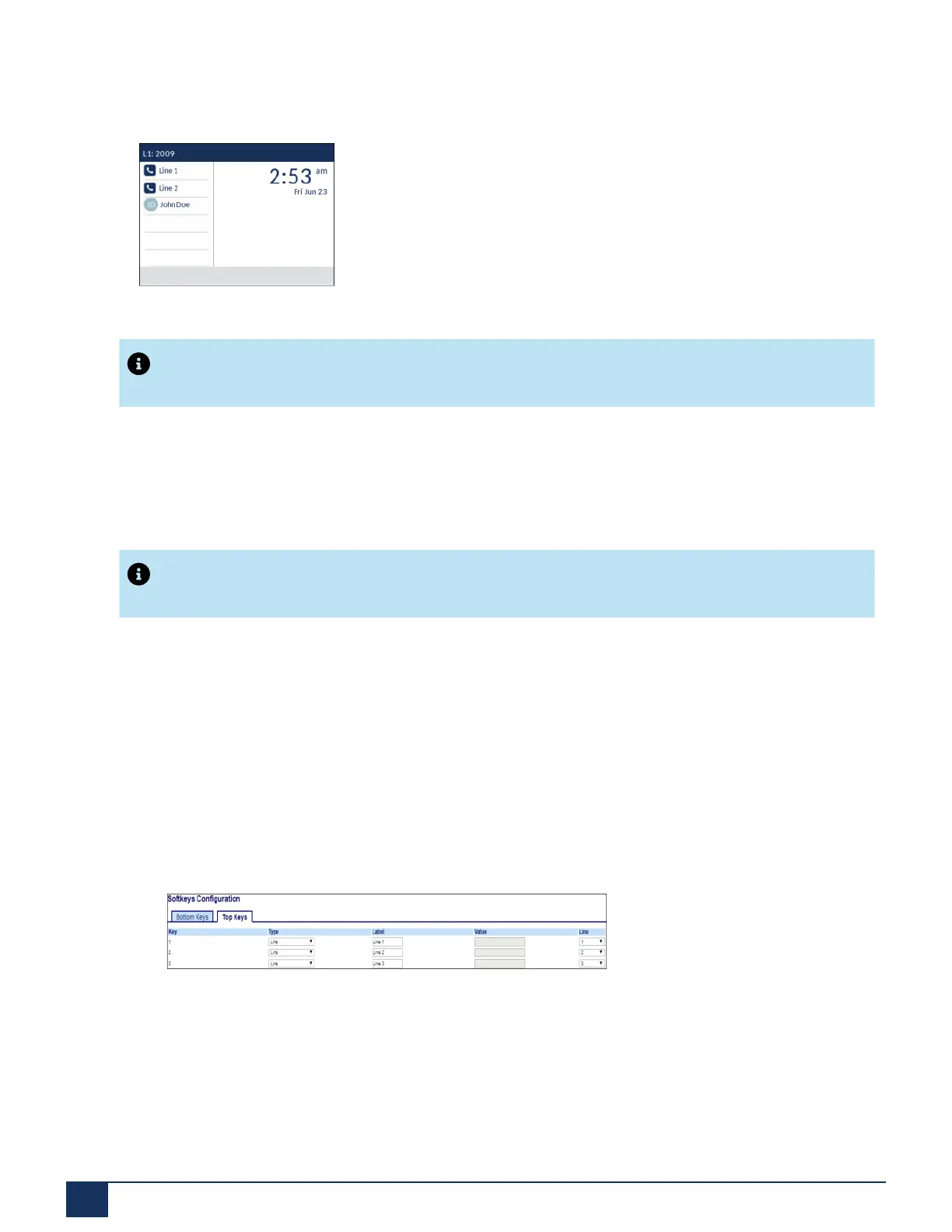 Line 2 hardkeys. By default, the line values for top softkey 1 and top softkey 2 are set to Line 1 and Line 2