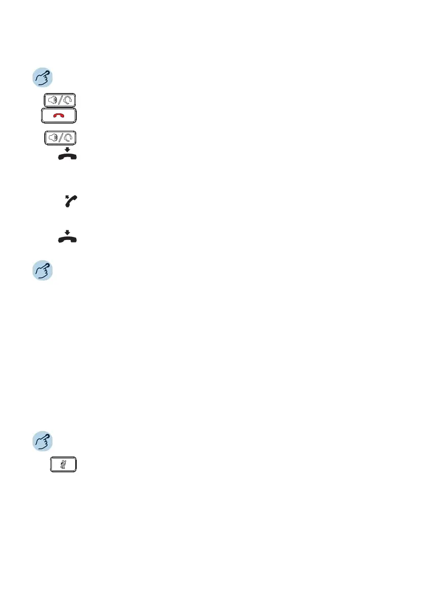 ➔The loudspeaker and hands-free microphone are now deactivated.