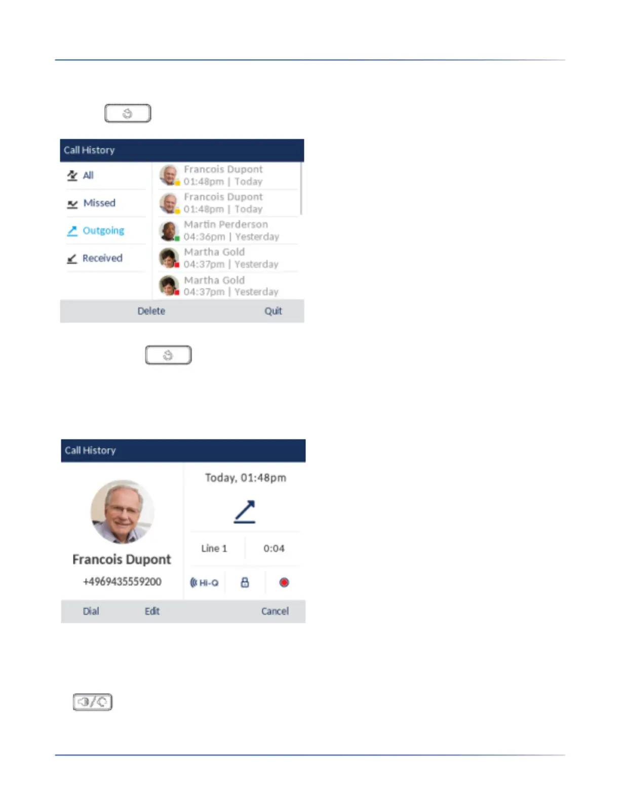 3. Use the up and down navigation keys to scroll through the entries in the Outgoing Redial List.