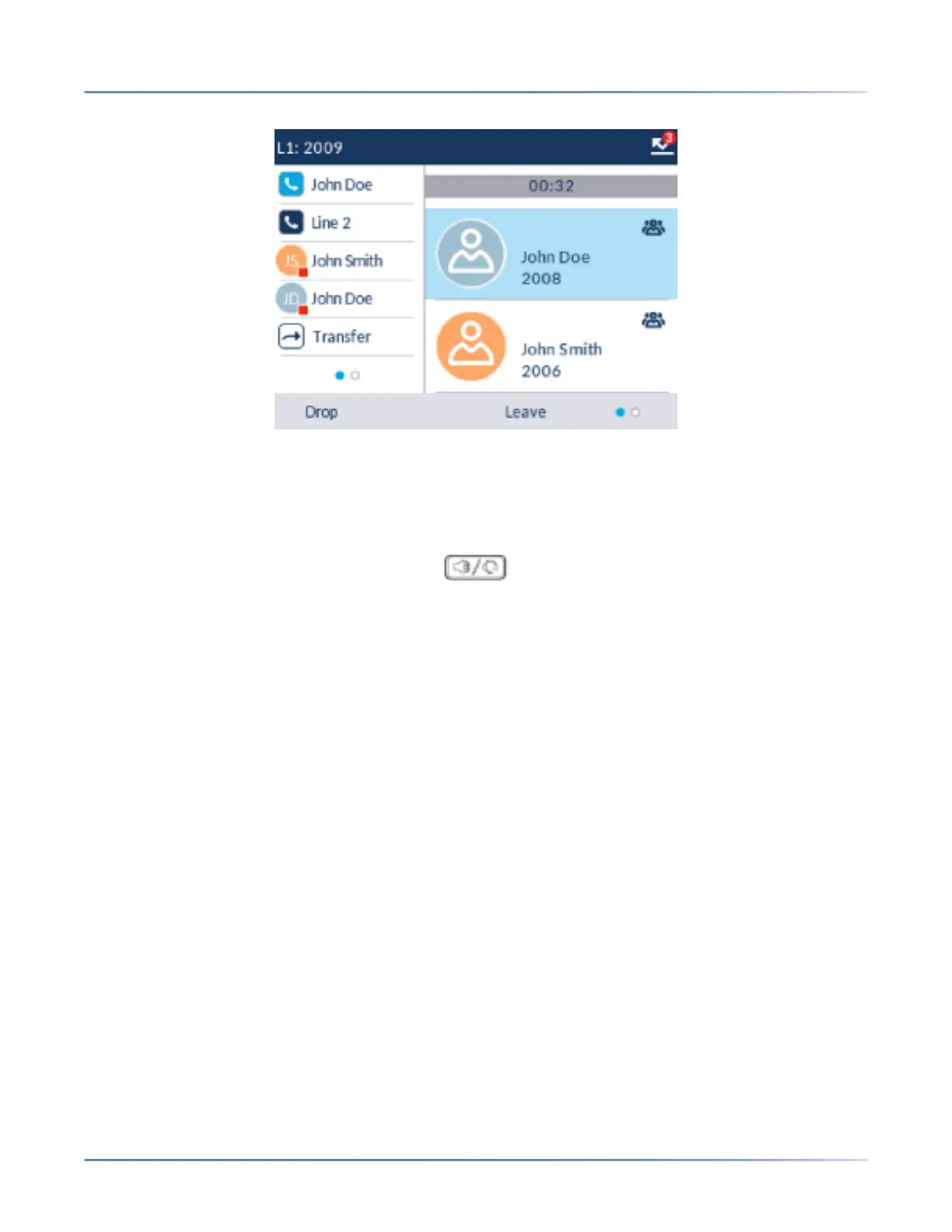 1. As Party 1, pickup the handset or press the key.