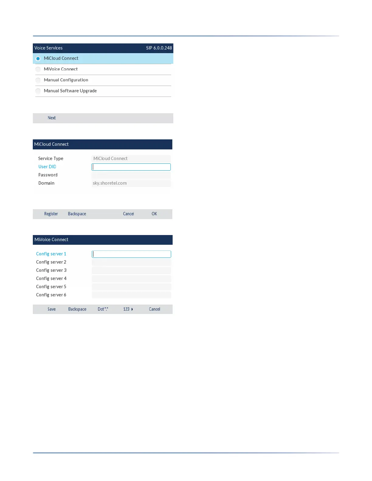 • For MiVoice Connect in the Config. Server field, enter the MiVoice Connect Server IP address.